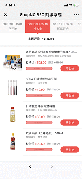 - 限时秒杀活动按期展示促销商品,而其它类型的店铺活动也拥有聚合页面,方便购买者找到价优商品。
