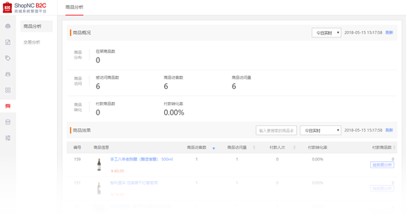 - 列表支持批量删除、上下架操作,并具有详细的库存、访客数、浏览量及总销量统计数量。